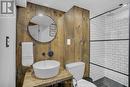 Affordability with style. Check out this 3 bedroom bungalow semi-detached home in north/east London close to access to the 400 series highways, Clarke Road or Veteran's Memorial Hwy. Open concept main floor living with generous kitchen island boasting breakfast bar set up plus built in stainless steel appliances, floating wooden decor shelves, subway tile backsplash and ample dining room area with built in storage cabinet, update designer lighting and wooden feature wall in living room area with electric fireplace. The barn door concept for the main floor bathroom reduces usable access space and increases function. A true rare find in that the primary bedroom has a private ensuite and walk in closet. The lower level is finished with another bedroom, full bathroom, work out room, family room and loads of storage space for all your seasonal items and needs. Enjoy the private fenced rear yard with full swing gate for boats, trailers or extra equipment needed to be stored in the yard. Check this property out and bare witness to this incredible opportunity in an affordable price range. (id:27)
